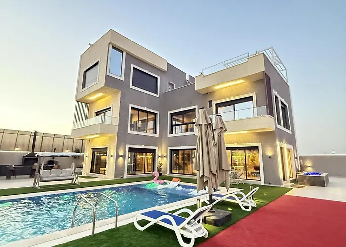 Noorhan Private Luxury Layover Villa - 10 Minutes To Airport Amman offers proximity to nearby tourist spots, such as the Qasr al-Qastal Palace, situated 25 minutes' walk away. This villa includes a free private car park and a terrace with views of the pool.